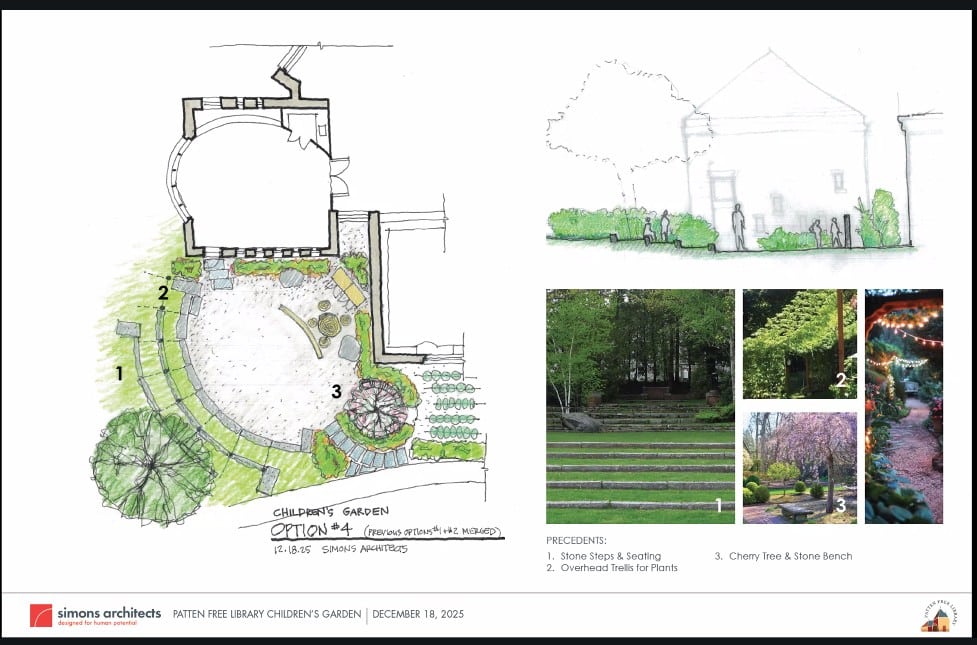 We are working with Scott Simons Architecture for the design of our new Children’s Garden. The feasibility drawings show what we envision for this exciting new space next to our building.
